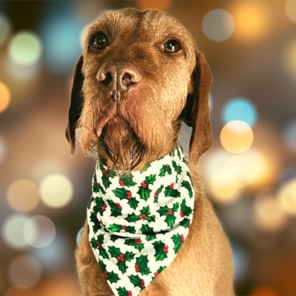 DOG BANDANA - HOLLY - Small Made to Order - please allow about 3 weeks for it to be made and posted to you