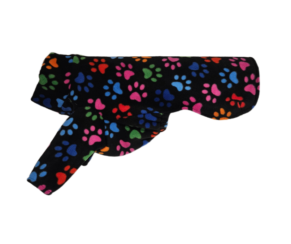 A warm water-resistant dog jumper with front legs made from polar fleece. It can be worn outside to protect your dog from the elements, or in the house as a cosy jumper.