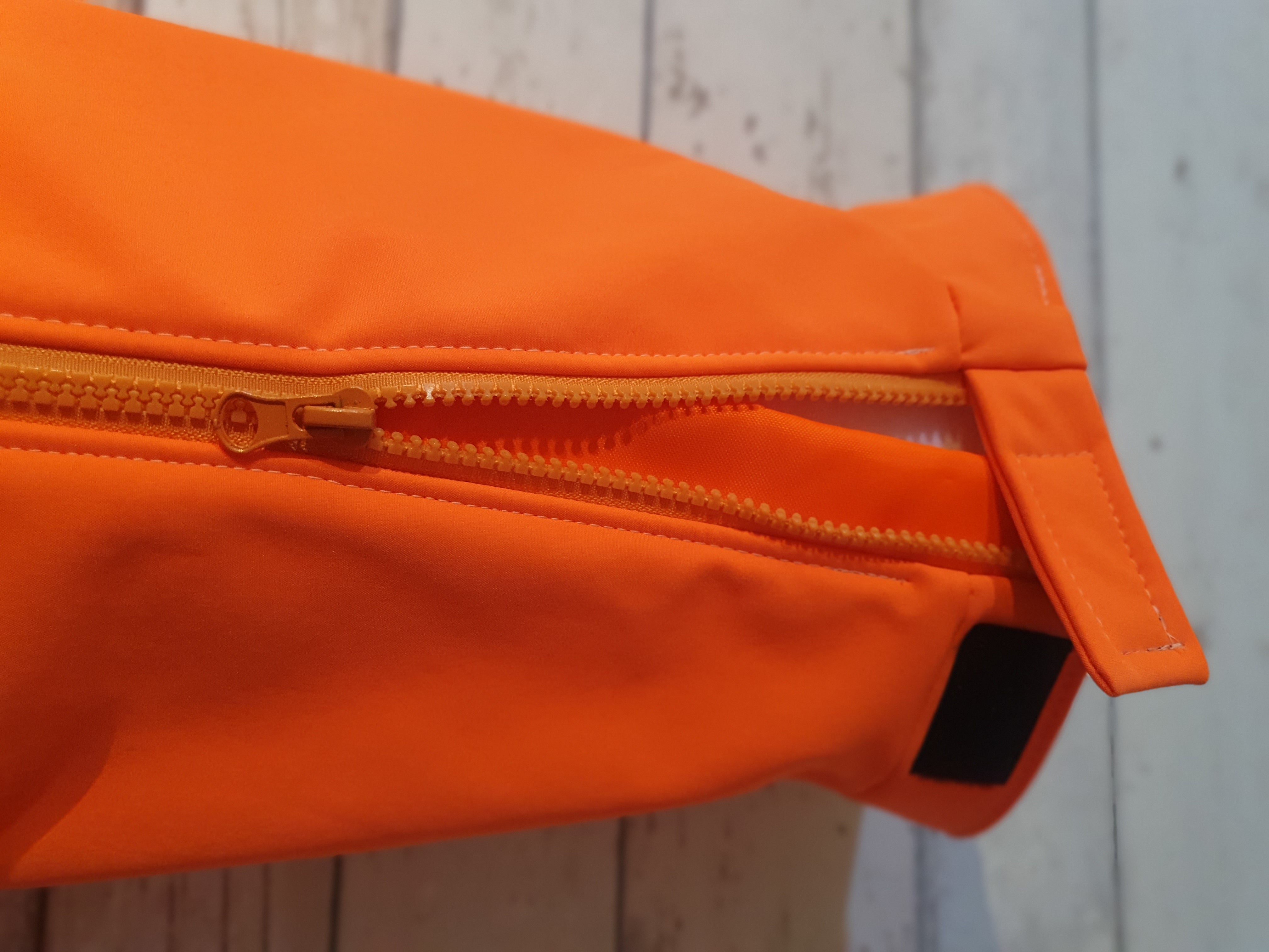 The dog vest has a zip up the back meaning that it is easy to put on your dog with no requirement to manipulate your dog's legs into the leg-holes. There is also a flap underneath the zip to protect your dog's fur when fastening it and prevent hair from getting caught in the zipper teeth.