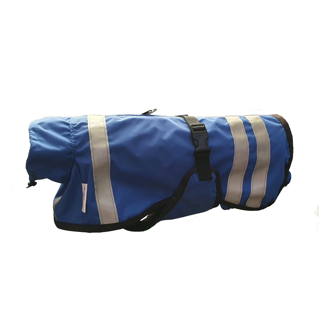 Should you intend on using a harness under the jacket, then please measure your dog when wearing it as this may affect the most suitable size of coat. Harnesses with handles on them are not suited to be work under the coat.