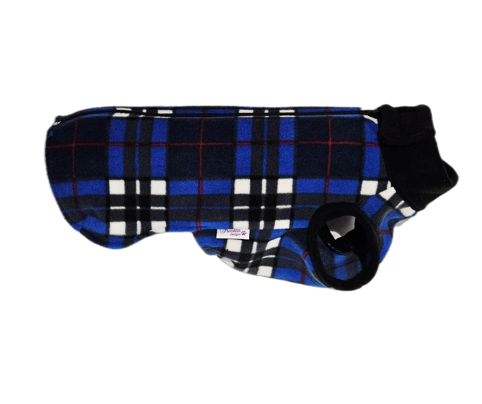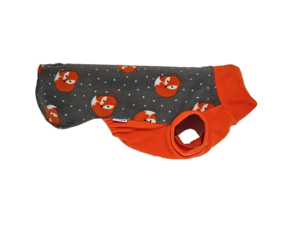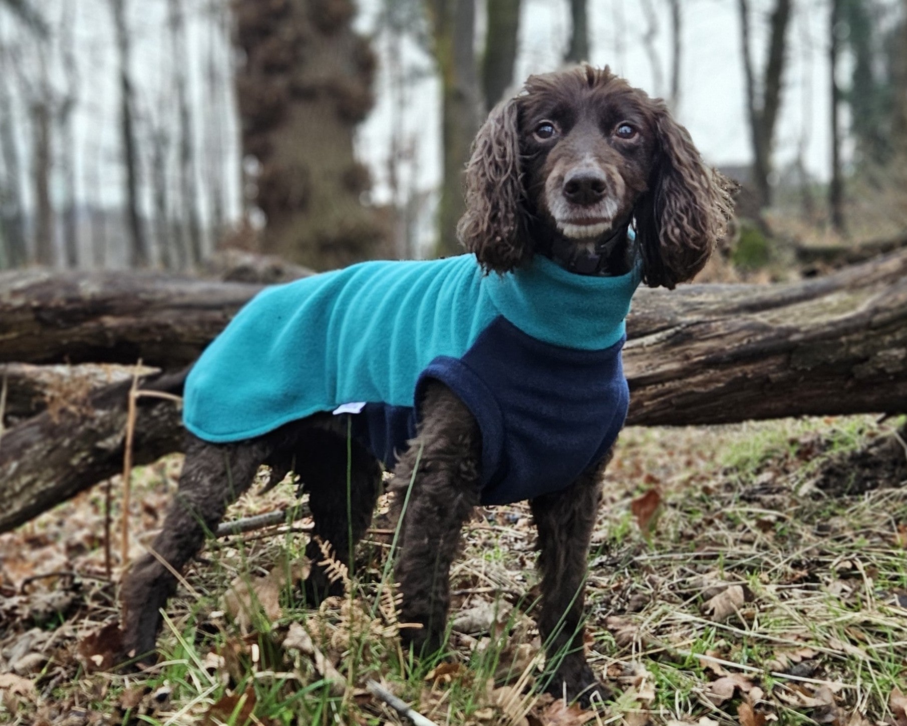 A warm dog jumper made from polar fleece that can be worn outside to protect your dog from the elements, or inside to keep them cosy.