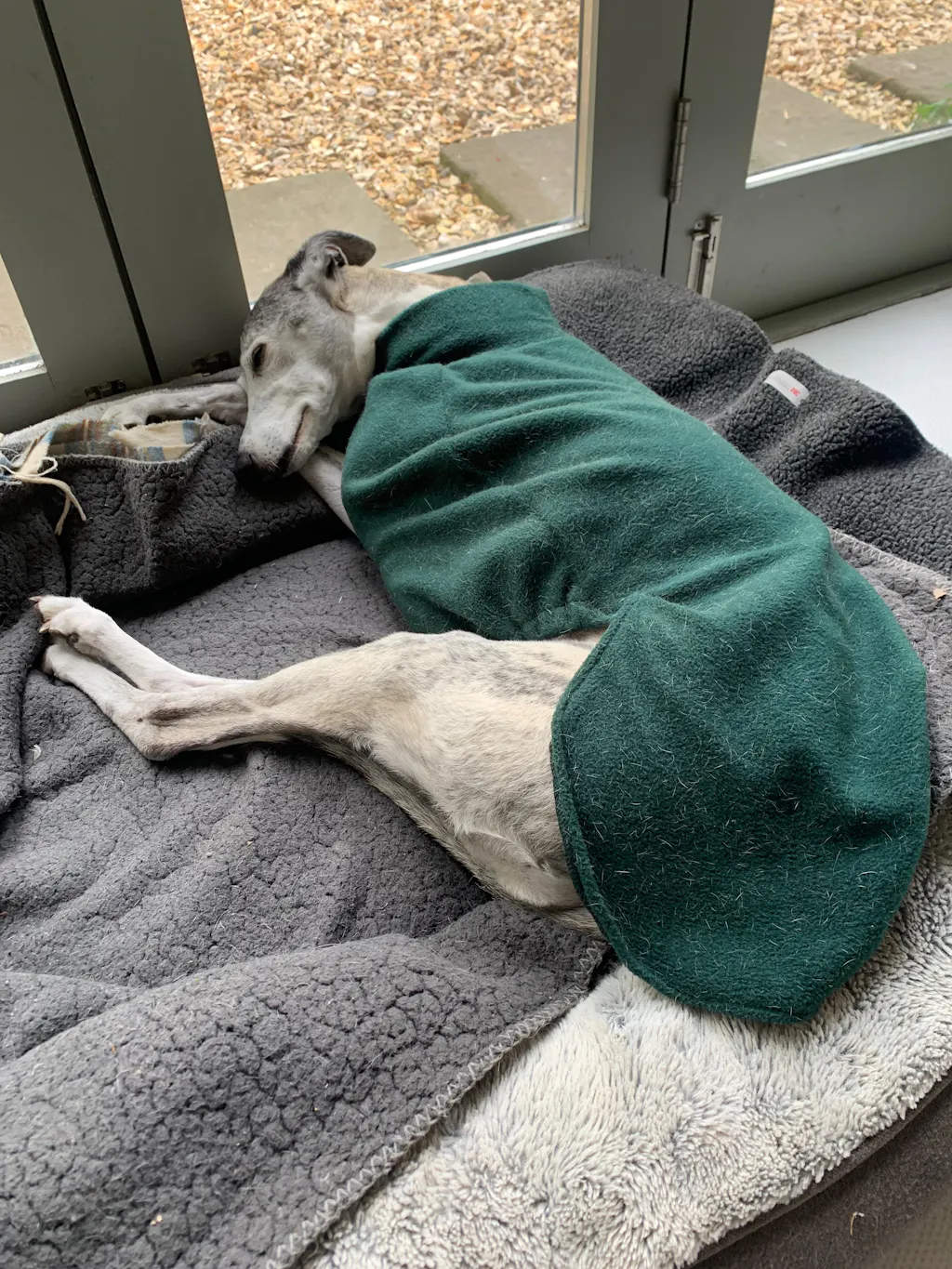 The tankie slips over your dog's head and has an elasticated waist for a neat fit without being too tight. The bonus of the elasticated waist is that the belly part of the coat doesn't sag so there are no wee accidents on the coat.